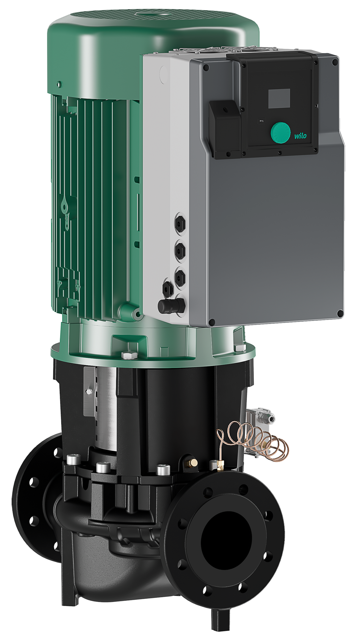 Elektronisch geregelde enkelvoudige droogloperpomp van het inline-bouwtype met flensaansluiting en automatische vermogensaanpassing